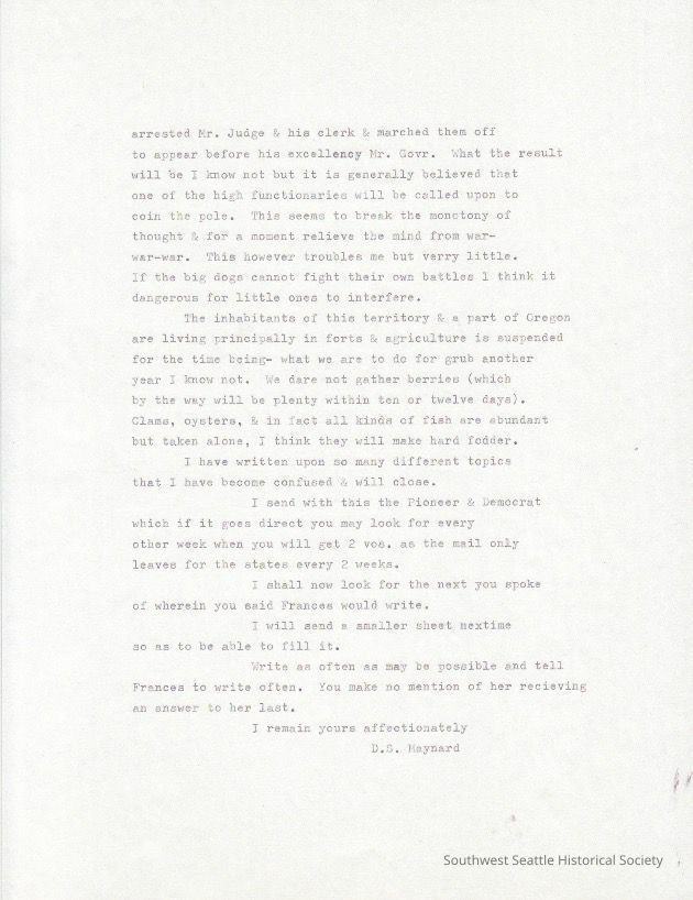 Transcription of Doc Maynard Letter dated March 3, 1856. See transcription of Doc Maynard Letter dated May 8, 1856 (2020.2.17.3a-b)