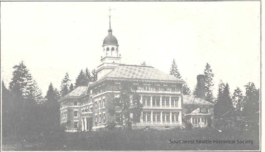 "Kenney Home for Old People Seattle Wash." B&W. Located on Fauntleroy Way SW near Lincoln Park. This is probably the view looking from the southwest, not familiar any longer, since the entrance is now on the west side.