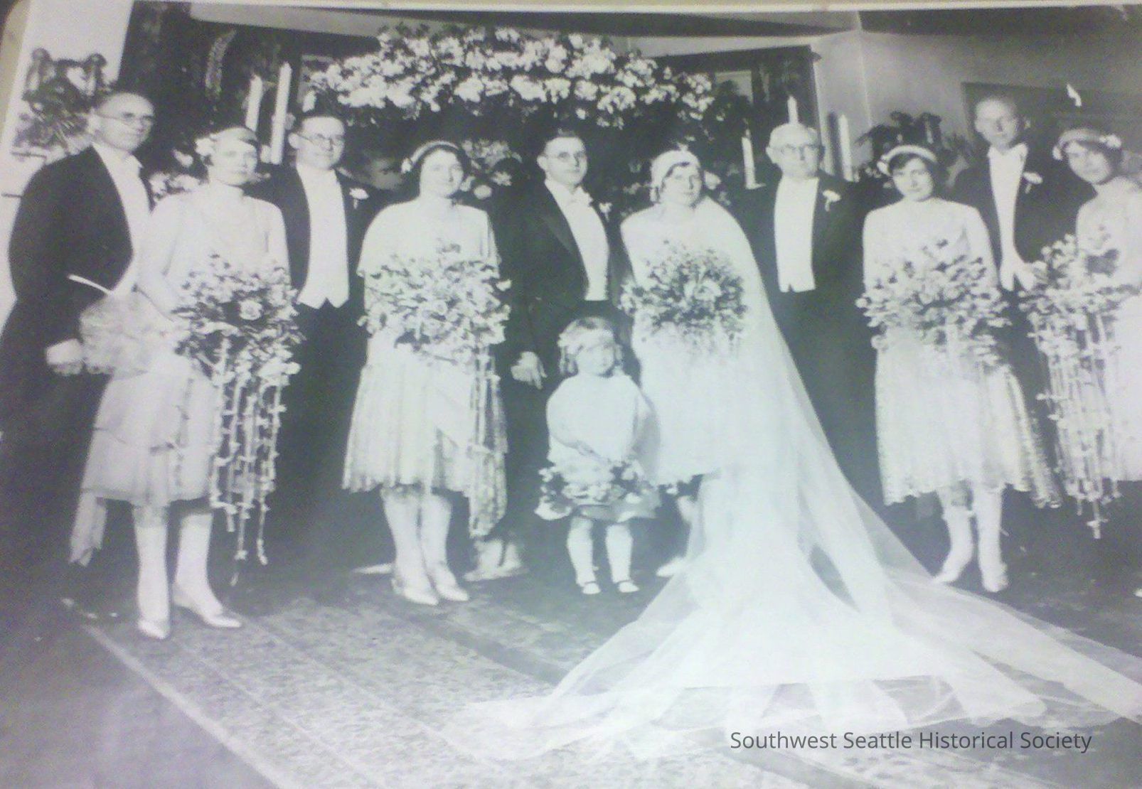 L-R: Elizabeth Whelan Shattuck (was chemistry student at NW with Isabel), Ed Campbell, Liz Taylor, Lawrence Colman, Isabel Colman Pierce, Nancy Sibley McPhee, Lawrence Pierce, Susan Colman, Kenneth Colman, Bernice Sibley Anslow, Duncan McLain