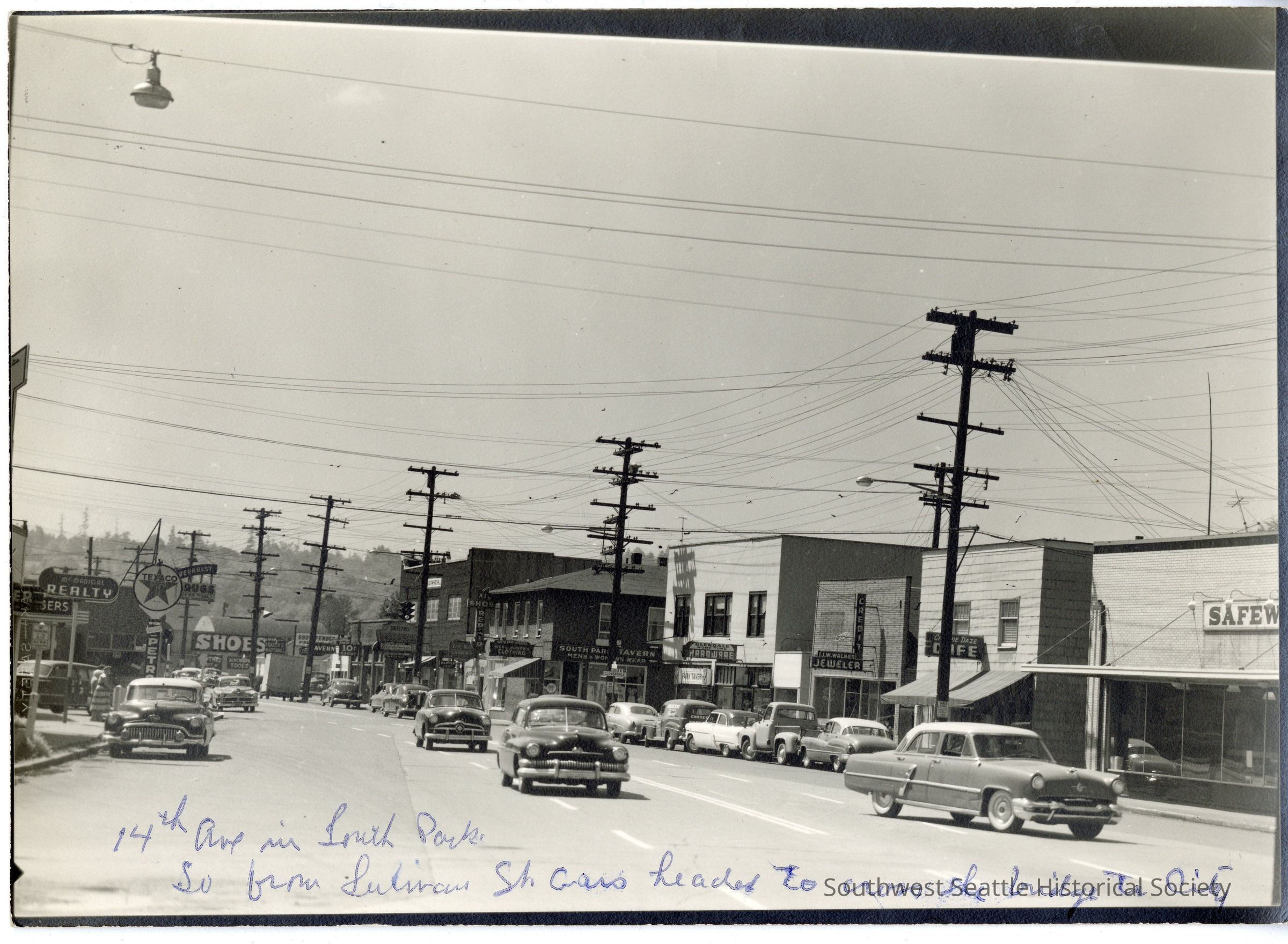 Safeway, Texaco, Shoes, Realty, South Park Tavern, Glendale Hardware, JW Walker Jeweler