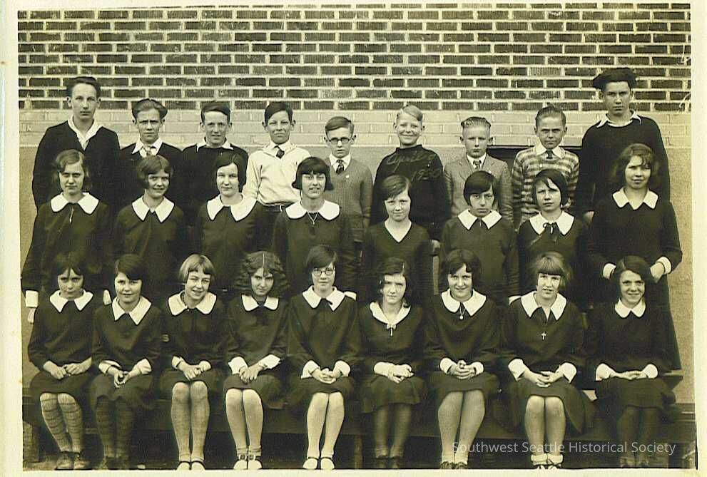 West Seattle High School, 7th grade class photo. Taken April 9, 1930