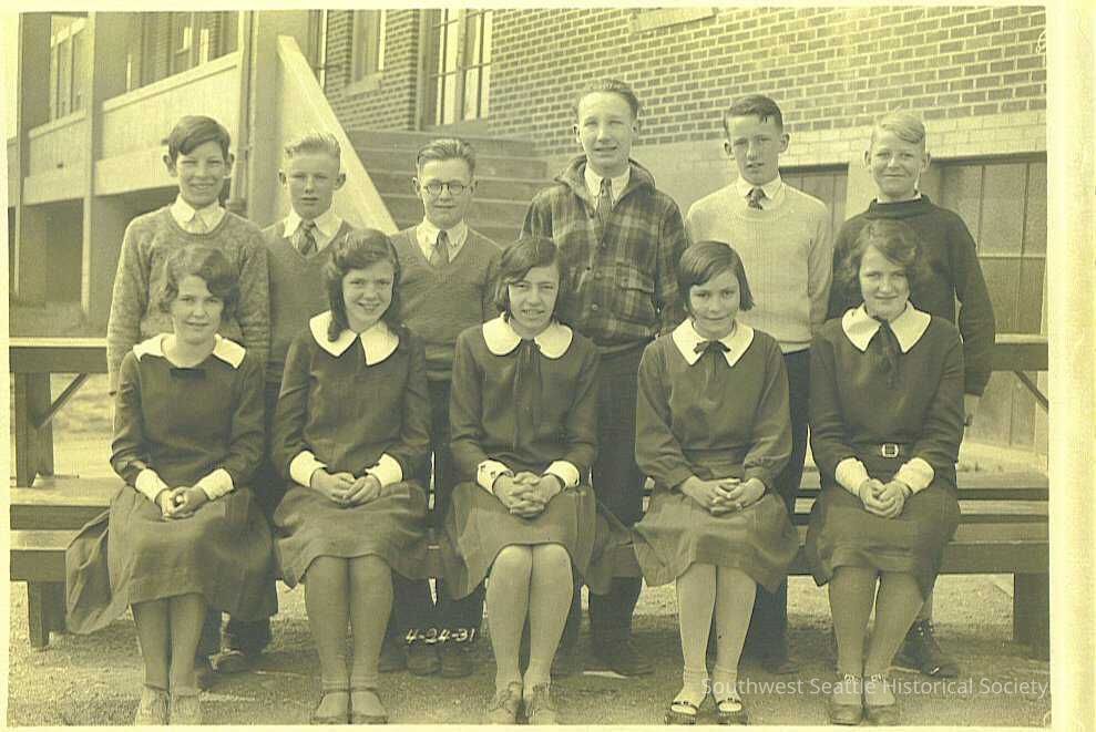 BW class photo with negative - WSHS, 8th grade