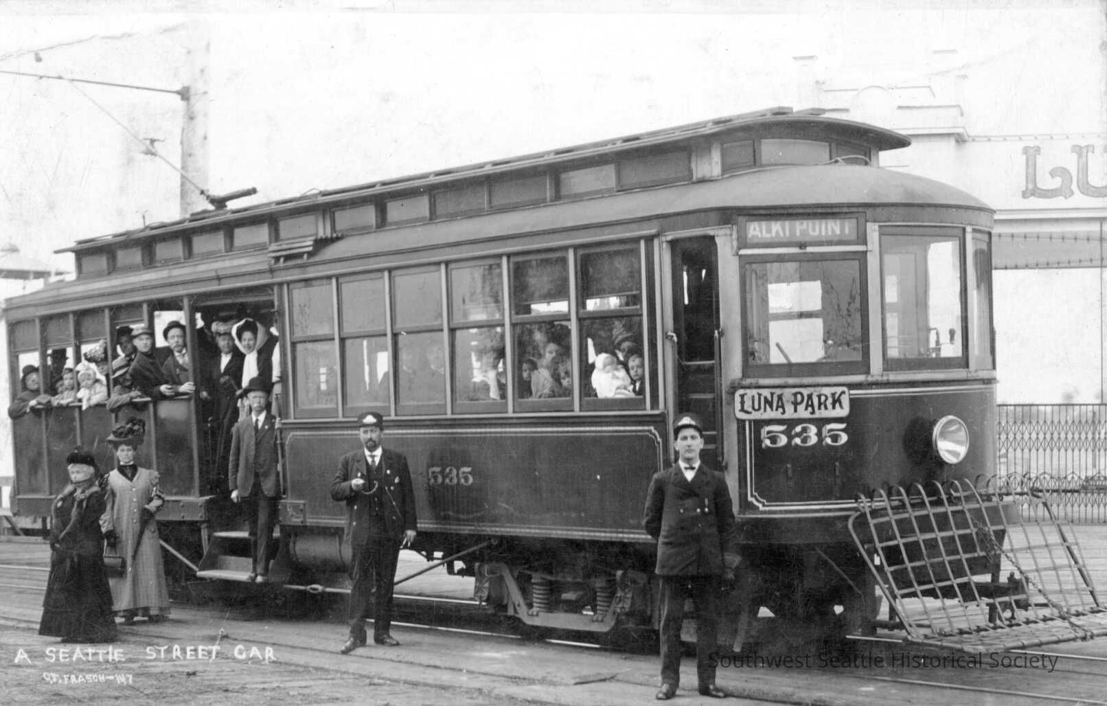 BW photo of Luna Park Trolley to Alki Point - oversize print