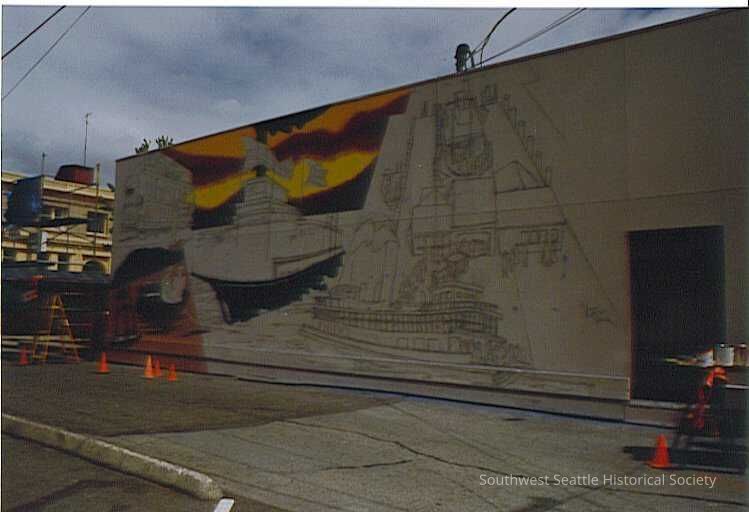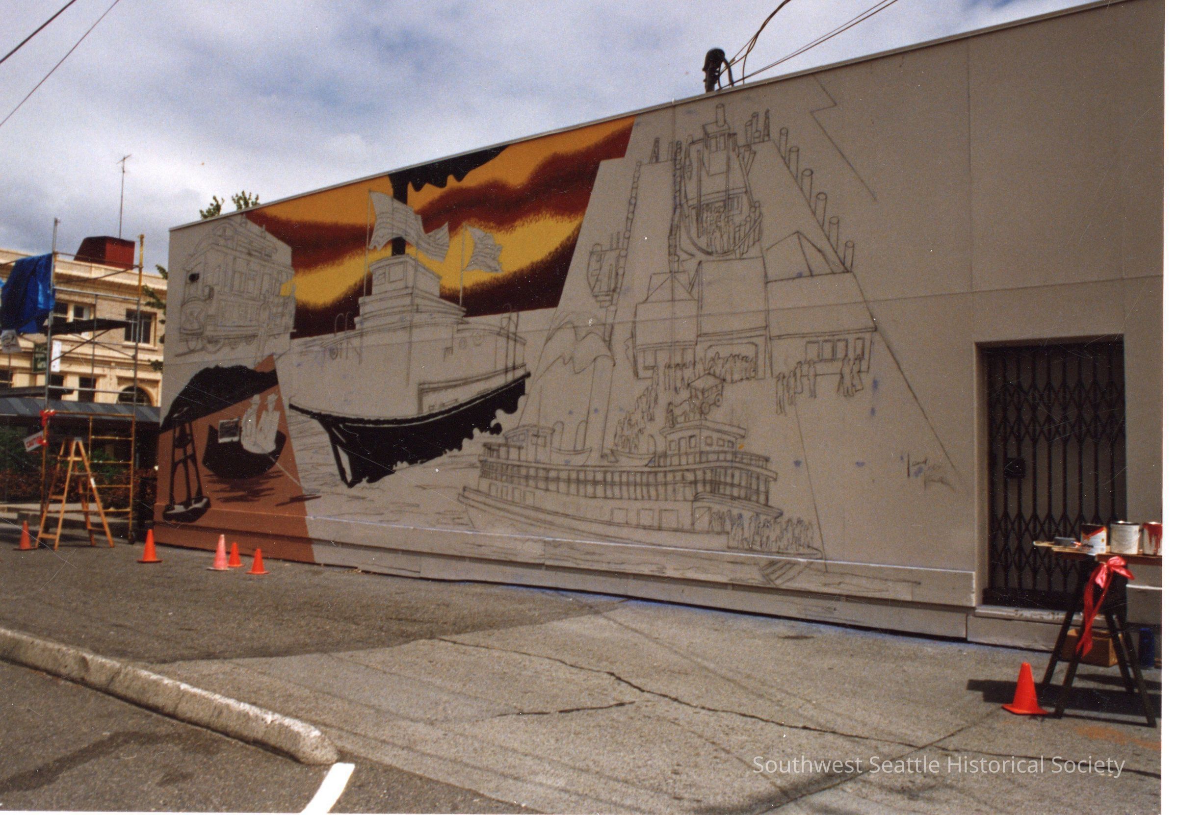 color photo - West Side Ferries mural in progress Murals of West Seattle