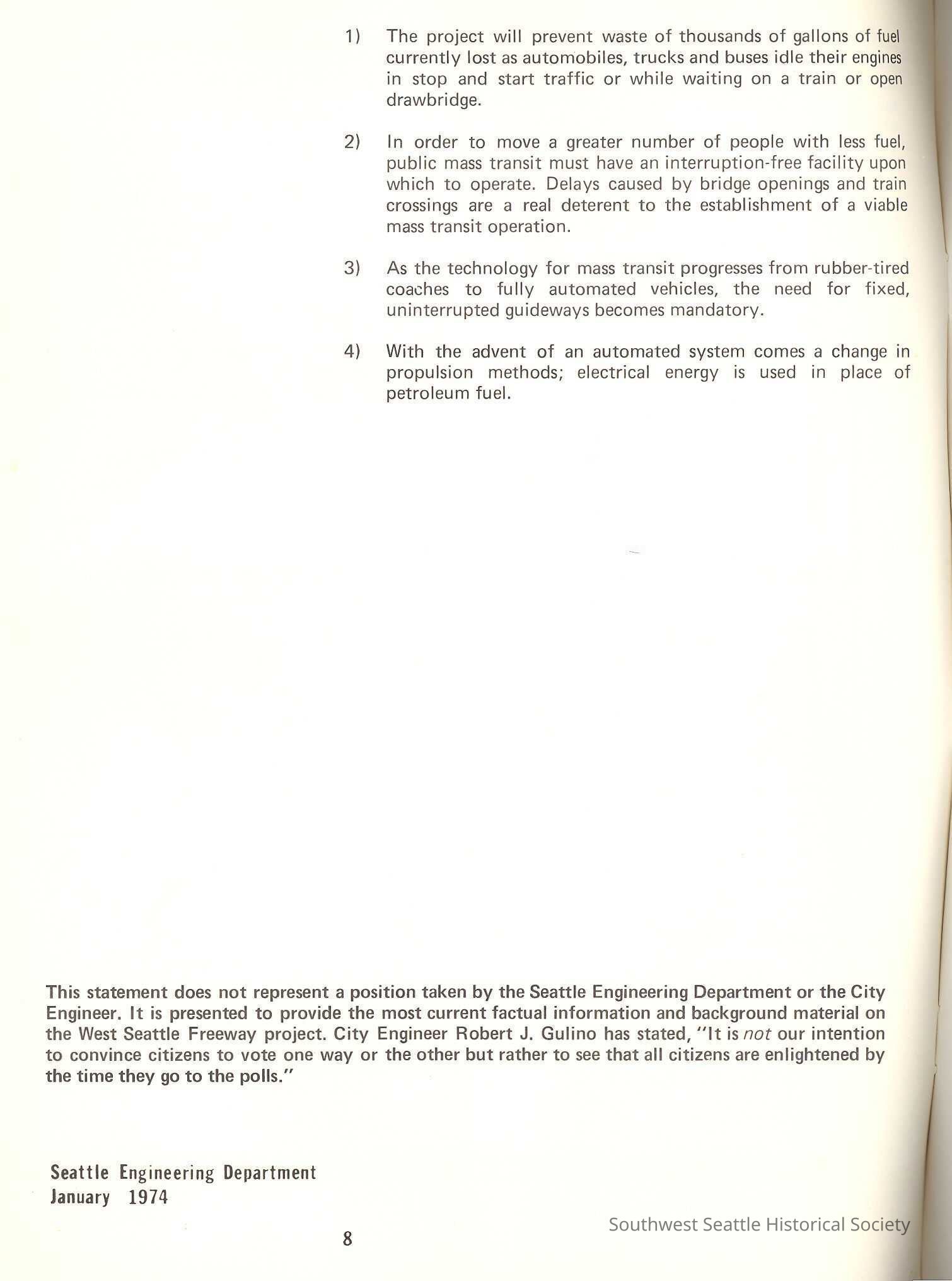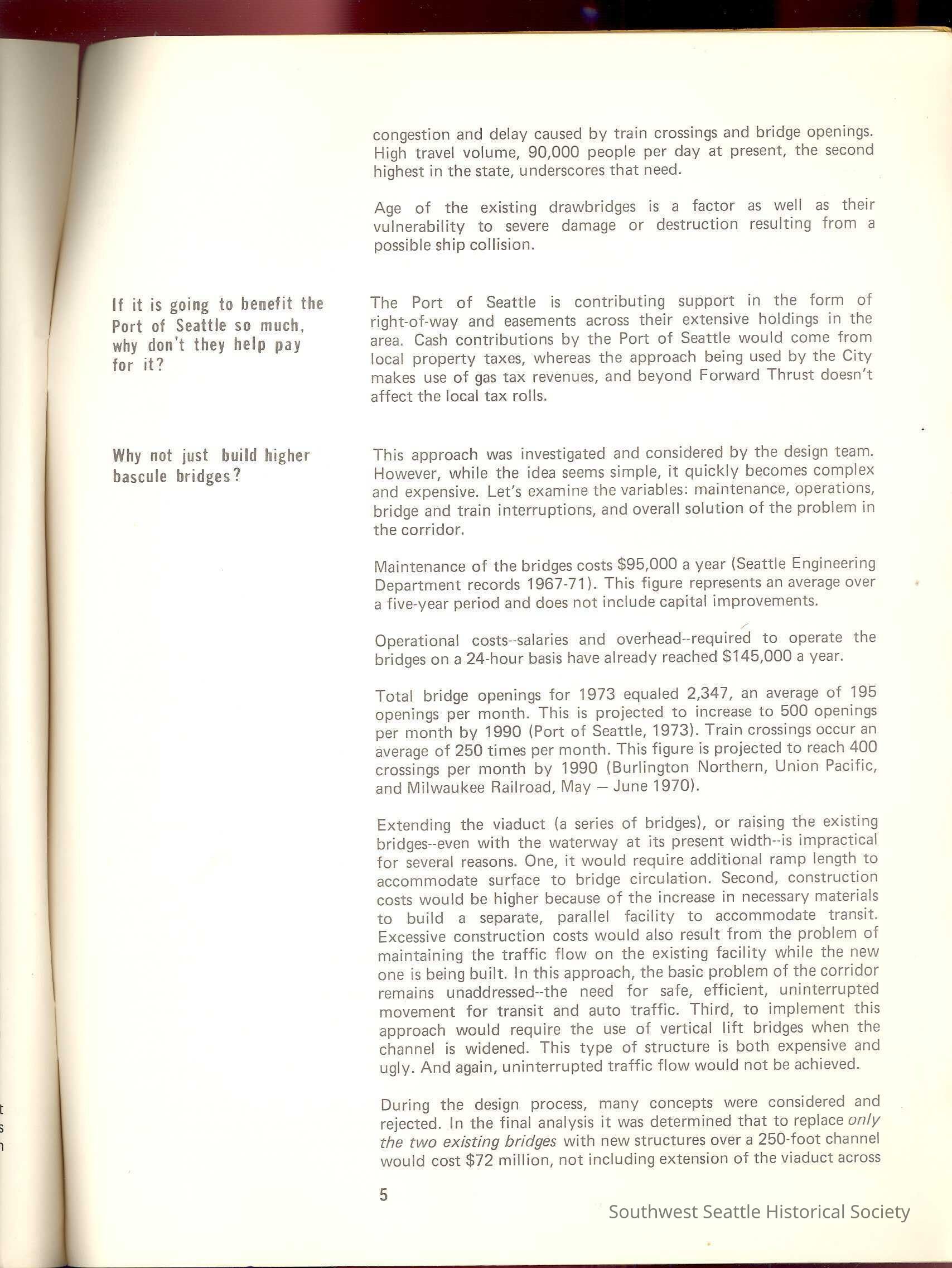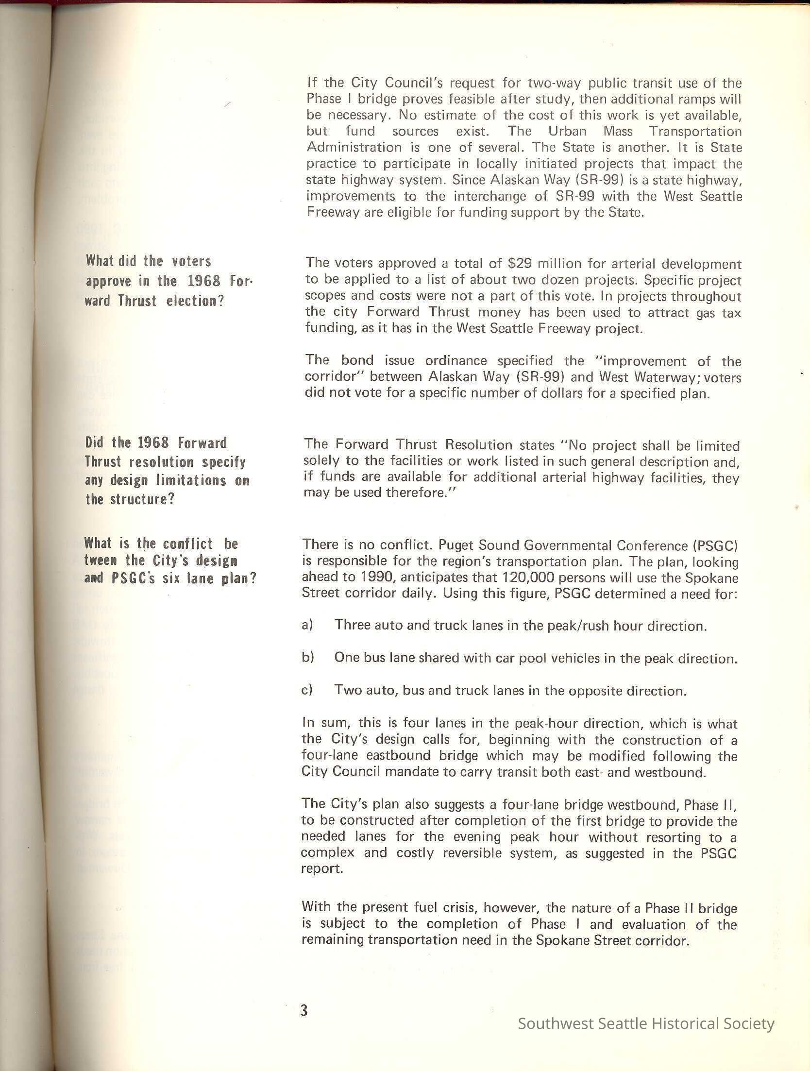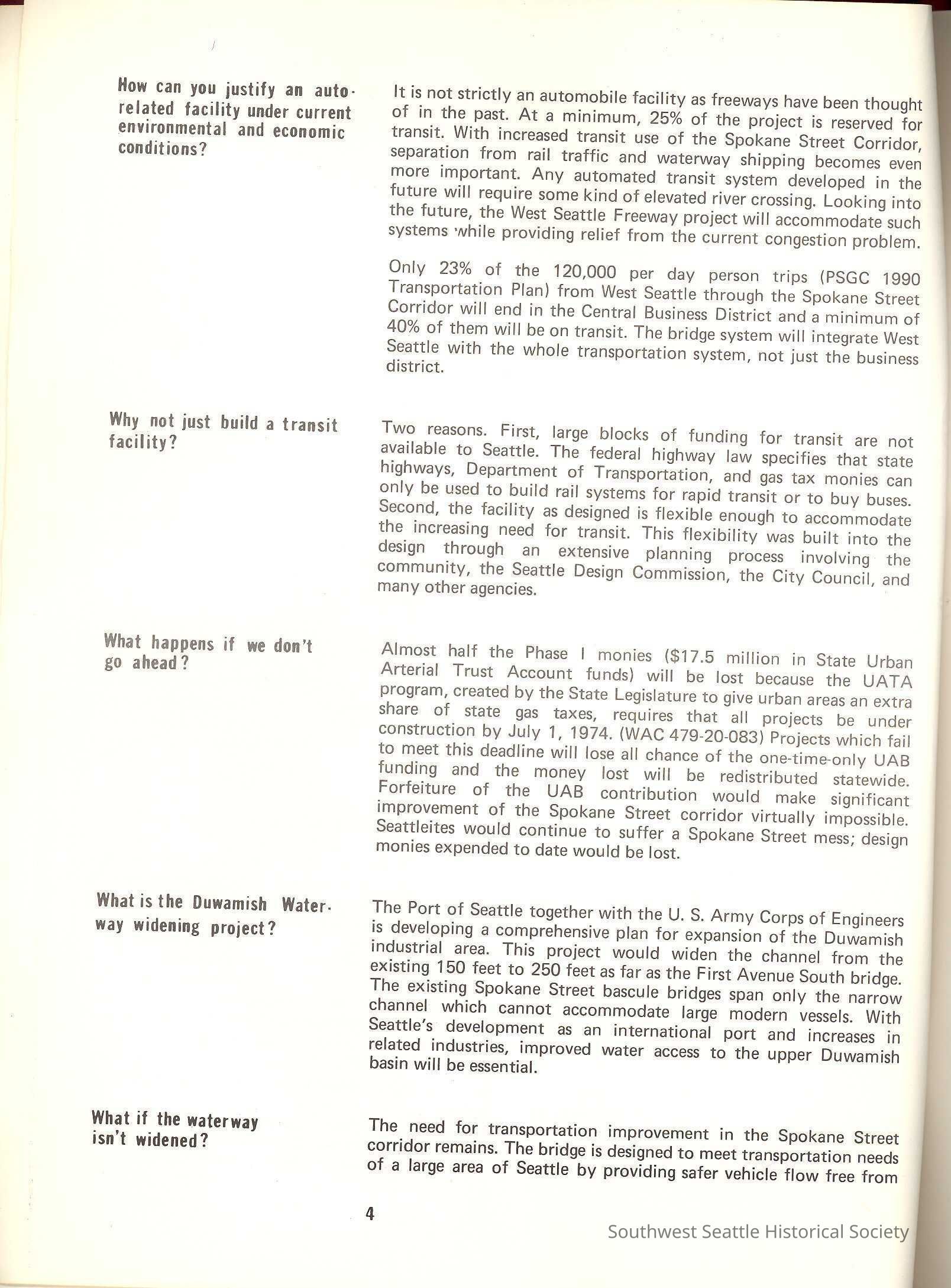 Information booklet; "fact sheet" on the West Seattle Freeway. Includes diagrams and information on construction and timeline of the bridge, 1974.Collection
