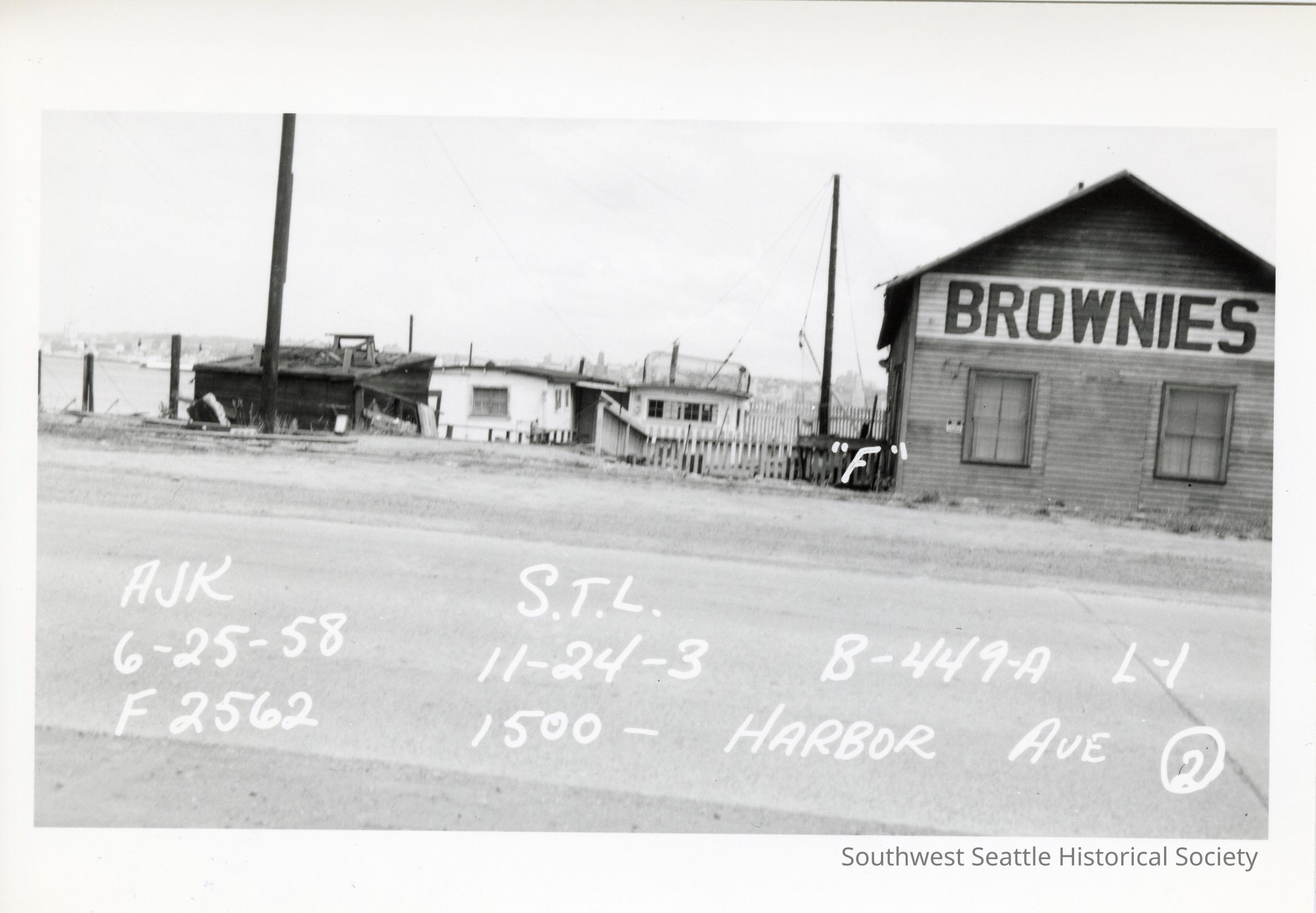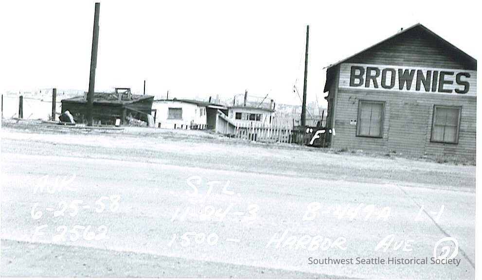 BW photo of 1500 Harbor Ave Brownies Boathouse, June, 25, 1958