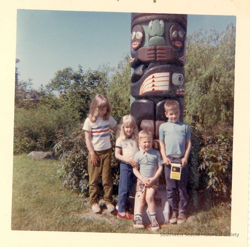 Morgan and Fleischman children at base of installed totem at Belevedere Viewpoint