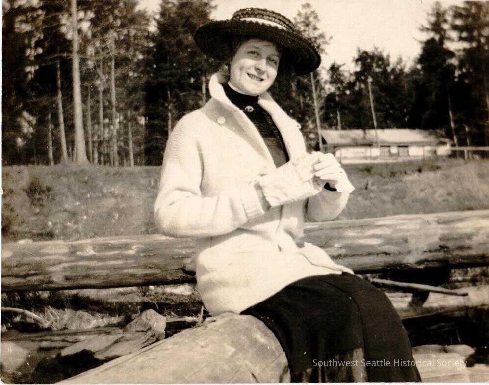 Jennie Wickstrom Jensen at Alki Beach in 1912.Entry/Object ID