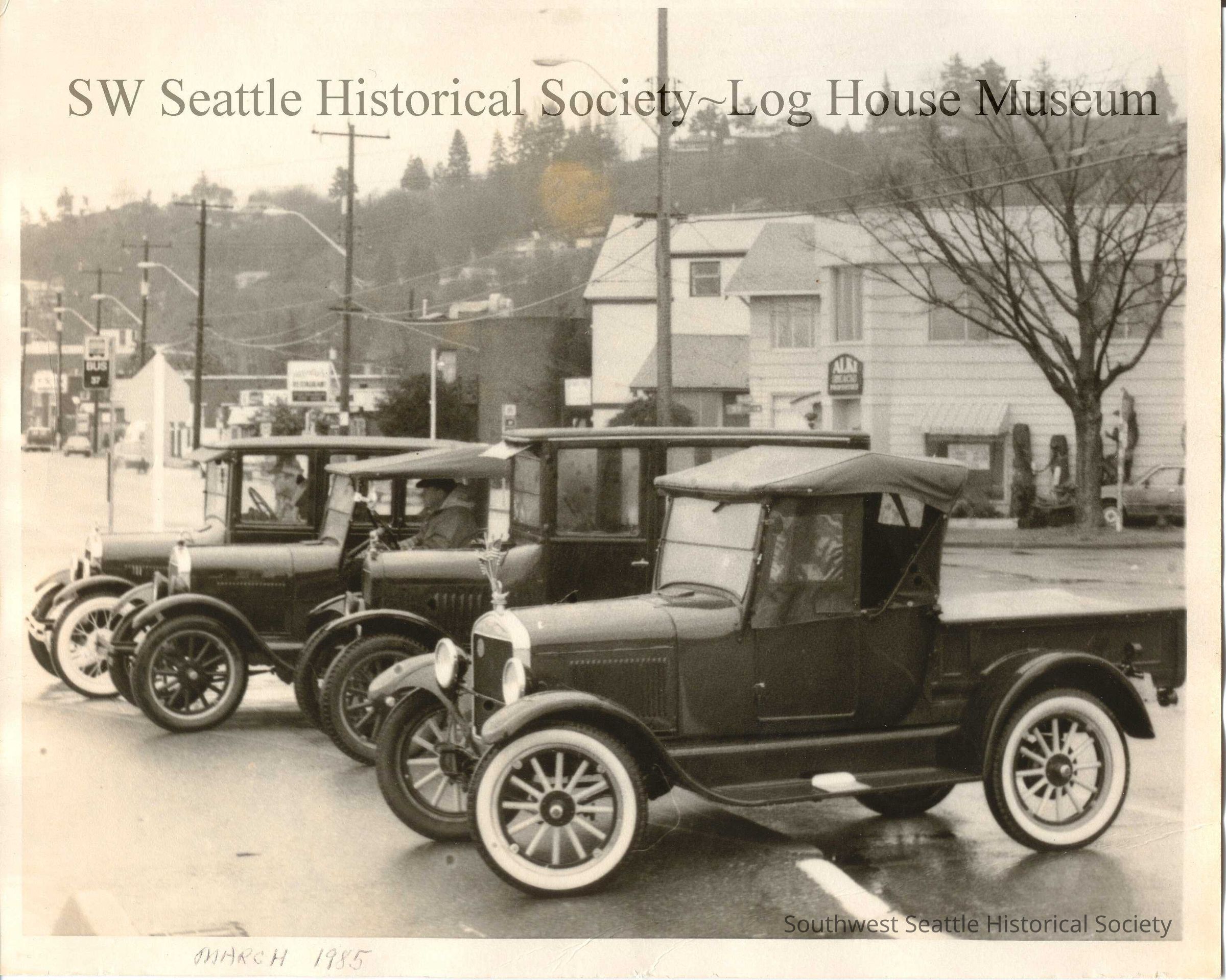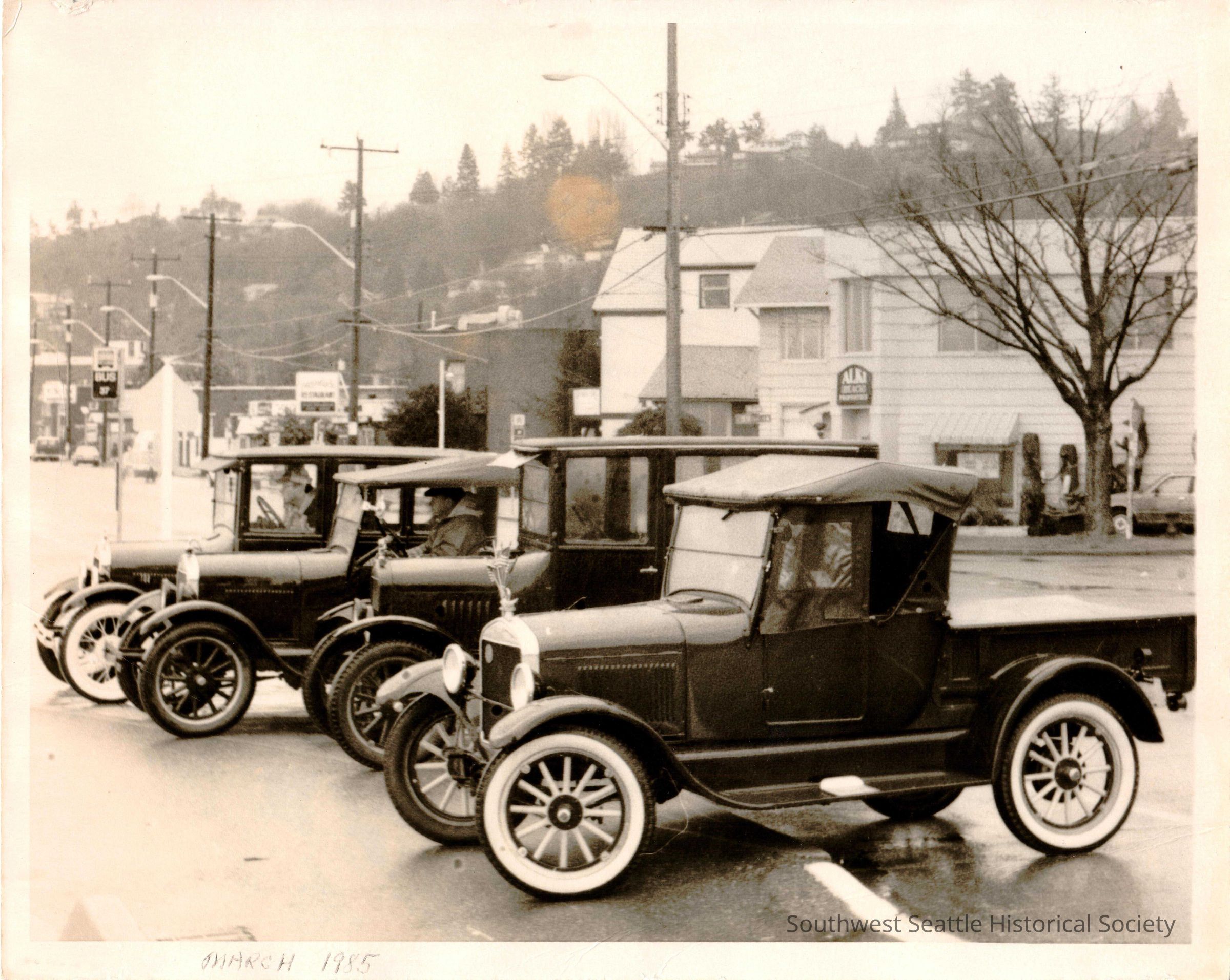 Model T Fords on Alki Avenue, 1985.