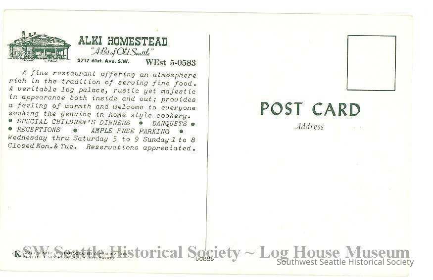 Postcard Alki Homestead RestaurantEntry/Object ID