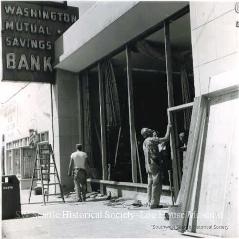 Black and white. Washington Mutual Savings Bank at California Avenue and Oregon St., under construction.