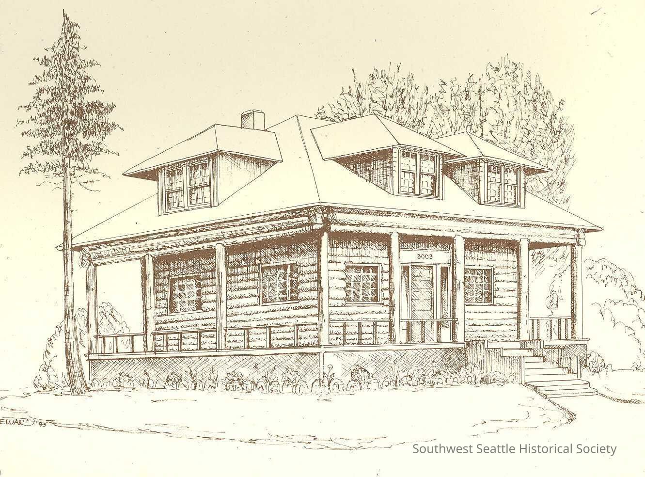 Vote to Save the Log Cabin poster. The text of the poster is printed in brown ink. In the center of the poster is an illustration of the Log House. The poster was used in an exhibit at the Log House Museum. The poster is mounted onto burgundy colored board with adhesive.