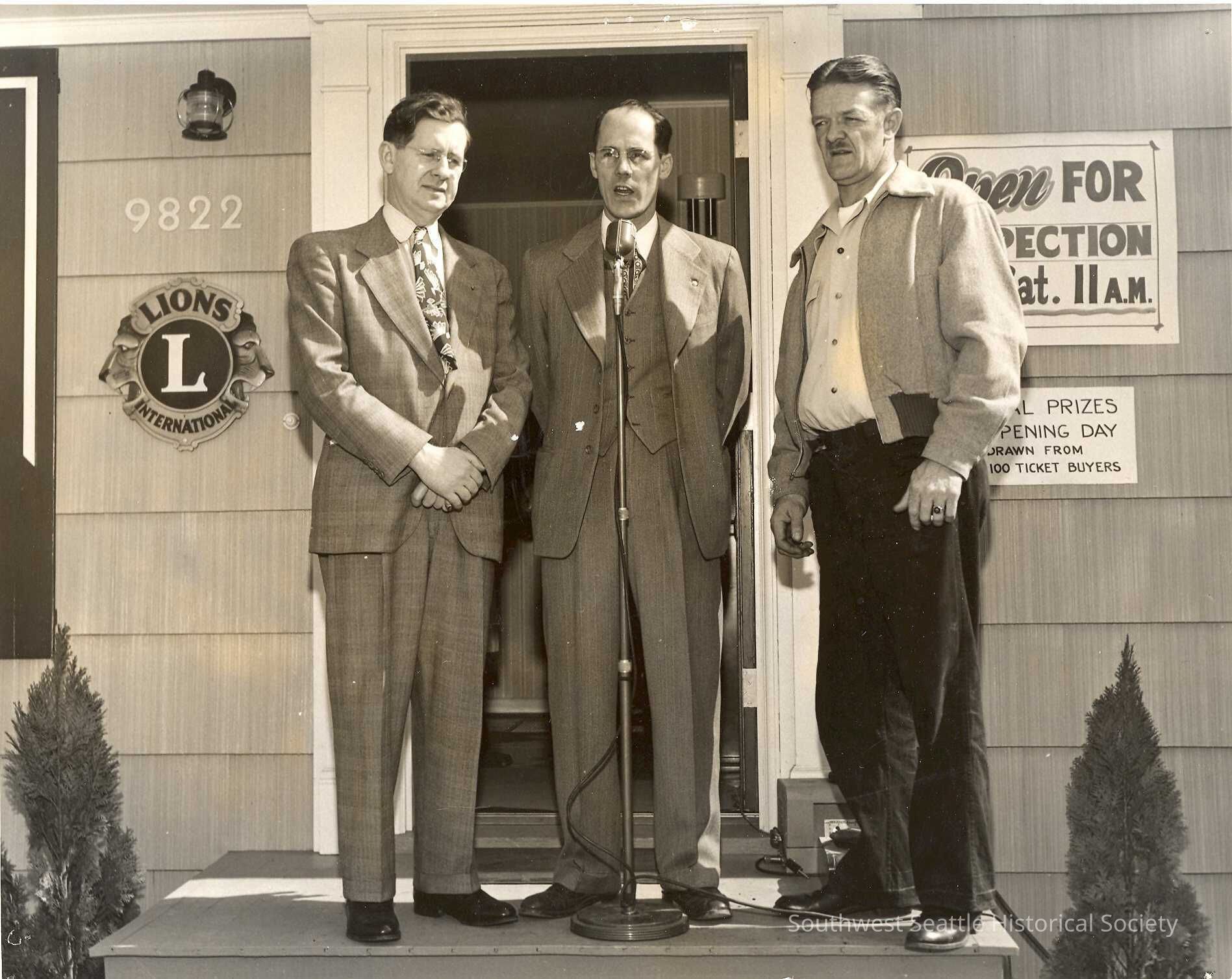 White Center Lions Club house giveaway, Elliott Couden speaking in center.Collection