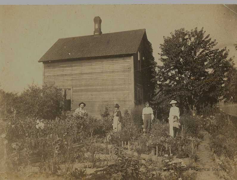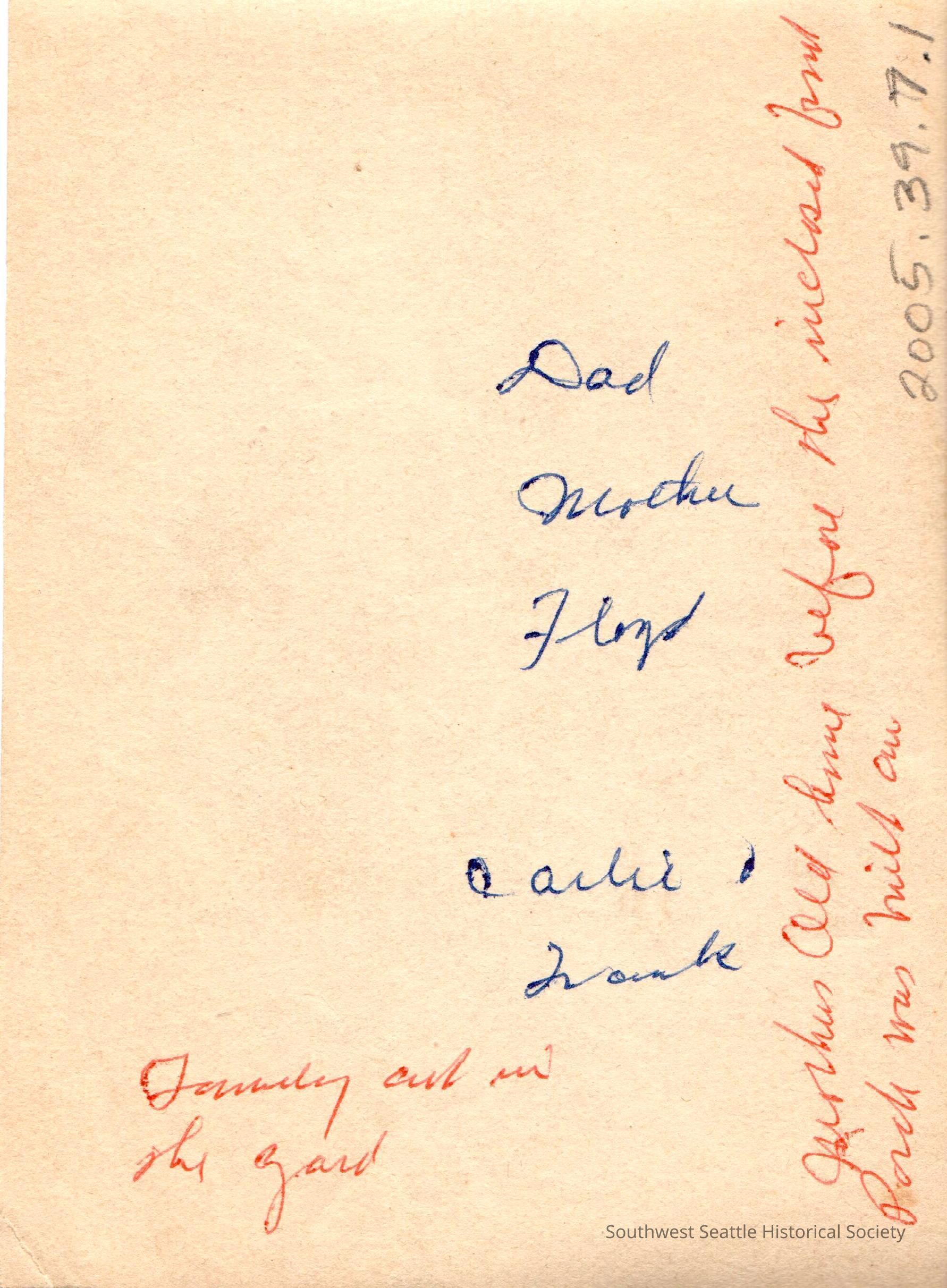 South Park, Charles F. Cushman, and wife Clara. Floyd Doty, Carlie Doty and Frank at about 3 years old. Before the enclosed front porch was built on. South Park, 1236 Cloverdale Street.