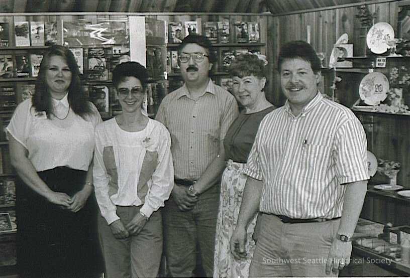White Center pharmacy with employees posed in front. "White Center" and "Radford" are written in pencil on the verso. Printer's notation and "W/C Pharmacy" written in marker in right margin.Collection