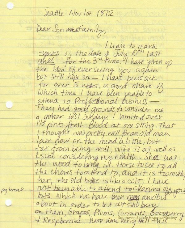 Transcript of Doc Maynard Letter dated November 1, 1872