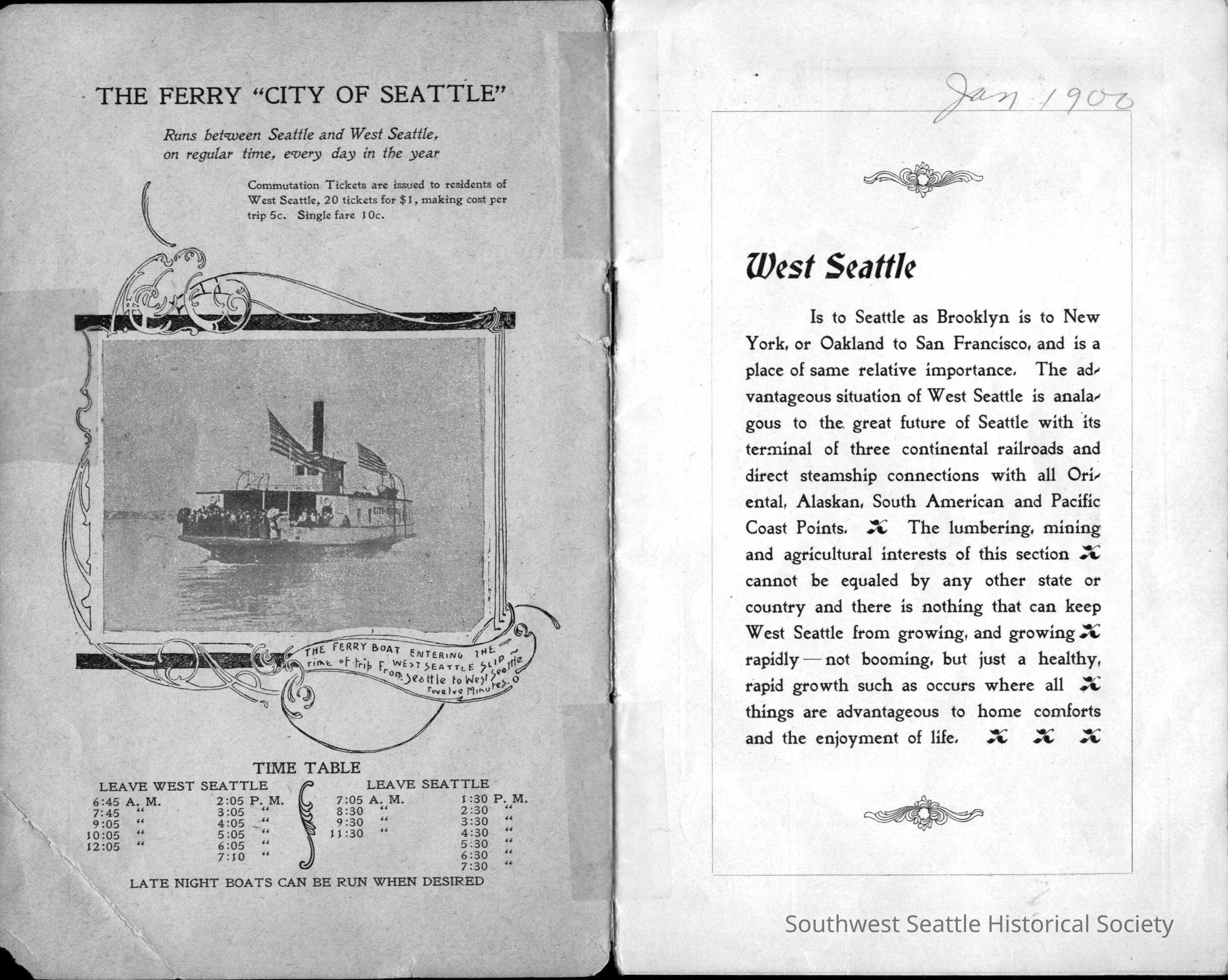 West Seattle Washington promo flyer Sturtevant and Co., page 2, West Seattle Ferry