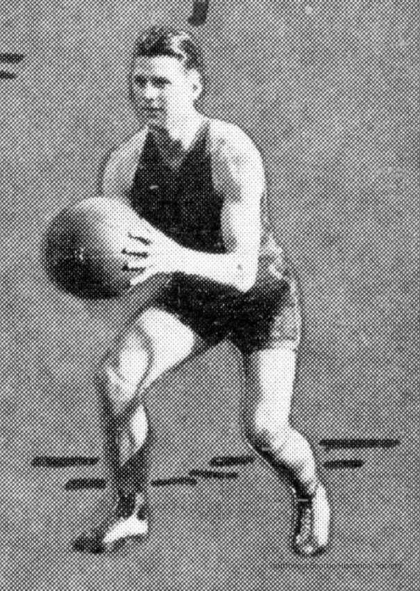 b&w photo of teenage boy holding basketball and in gym shorts and tank top