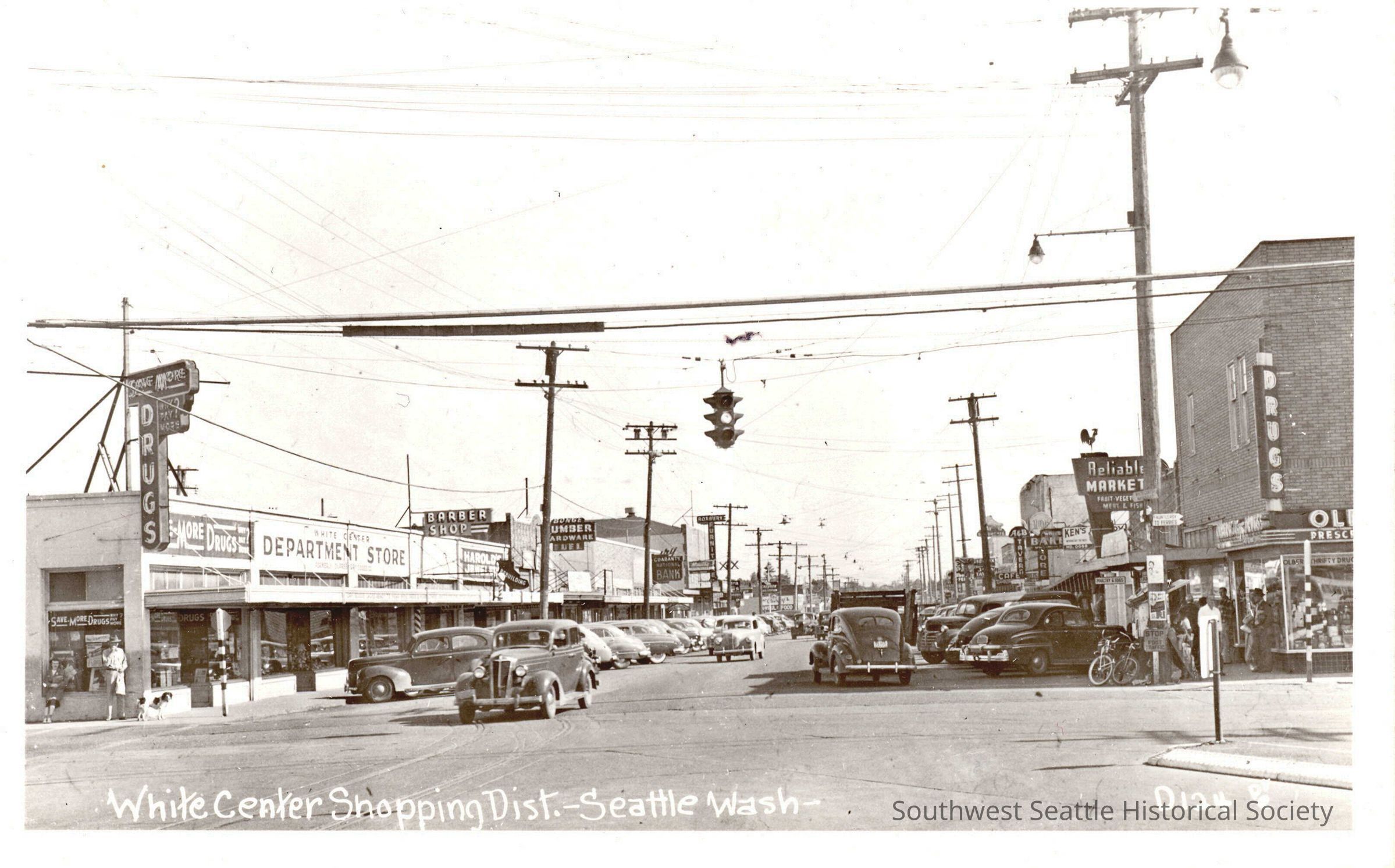 White Center shopping district. Robert Carney and Don Kelstrom dated cars for this date determination, along with the stores present. 8/21/2009