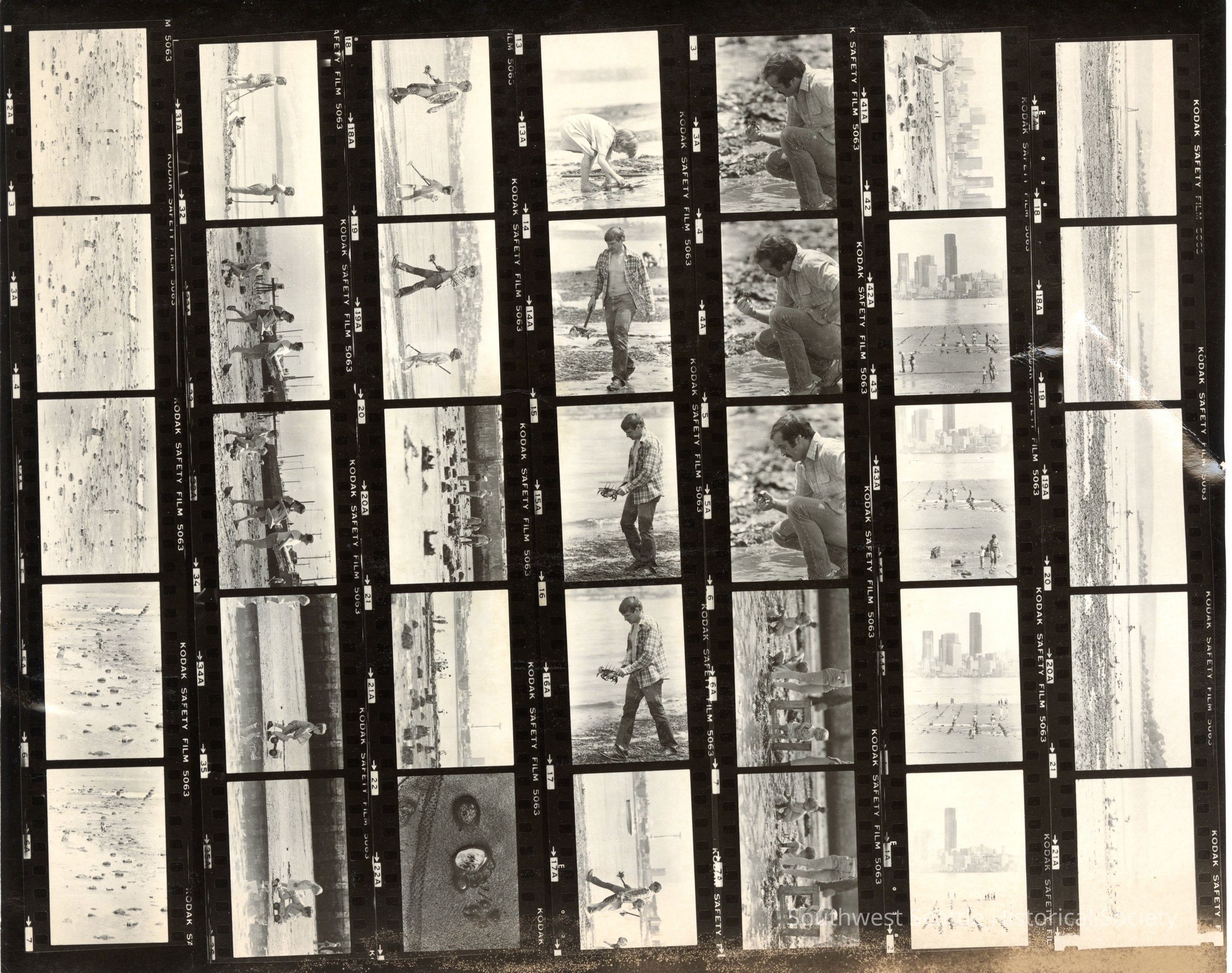 Three contact sheets showing images of West Seattle beaches at low tide, including beaches at Alki and Harbor Avenue. Also see 2003.20.982 and 2003.20.983.1
