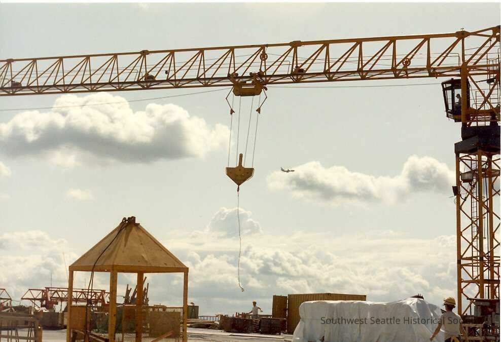 color photo - construction of the West Seattle bridge - crane