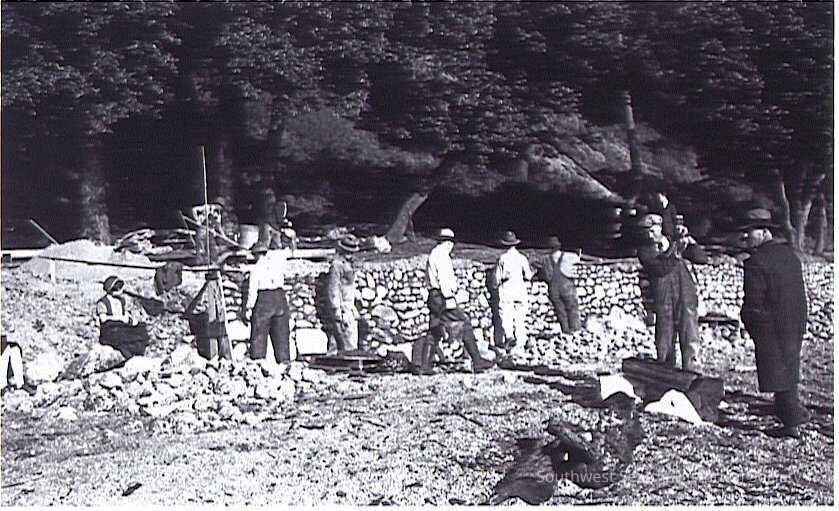 CWA workers are shown building the seawall at Lincoln Park in 1933. The Civilian Works Administration was the first job producing program of the new Roosevelt Administration. Additional projects at Lincoln Park included building shelters, trails, ball fields, wading pools, horseshoe pits and tennis courts