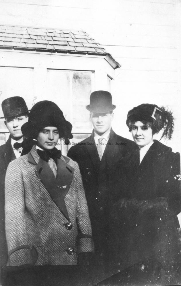 The couple on the left are not identified, at right are Grace Harris and Edwin Philleo. Written on the back by Phyllis Philleo “Dad and Mom, before they were married – isn’t Mom pretty?”