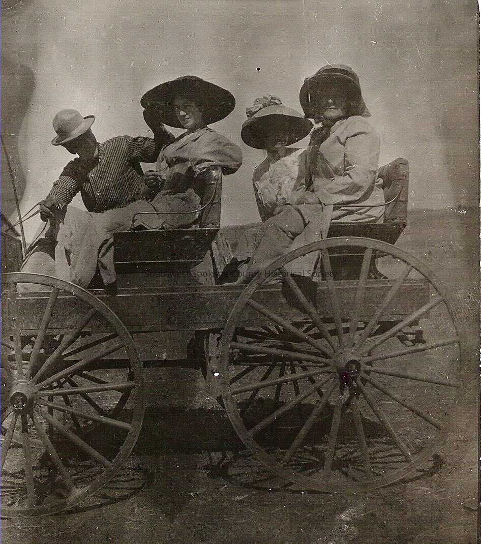 Harriet Miller (Olsen) in a wagon with Frank and Ella Fish.