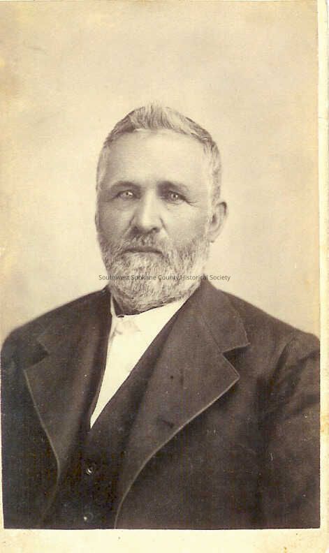 Black & White bust of a grey bearded man in down-collar white shirt and dark waistcoat and wide lapel suit jacket.