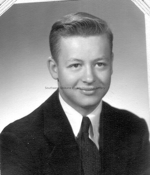 B&W School portrait of an unidentified young man. Appears to be a senior photo.