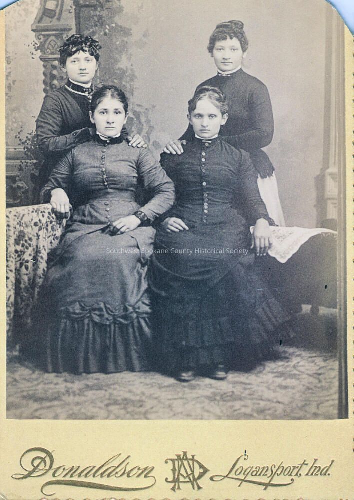 Cabinet card photograph of 4 young women,unidentified but likely a relative of the Henry or Wilson families. From the Donaldson studio of Logansport Ind.