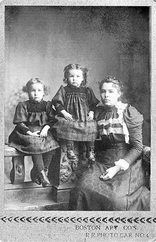 Cabinet card woman and 2 young girls, Boston Art Co. R.R. Photo Car 4