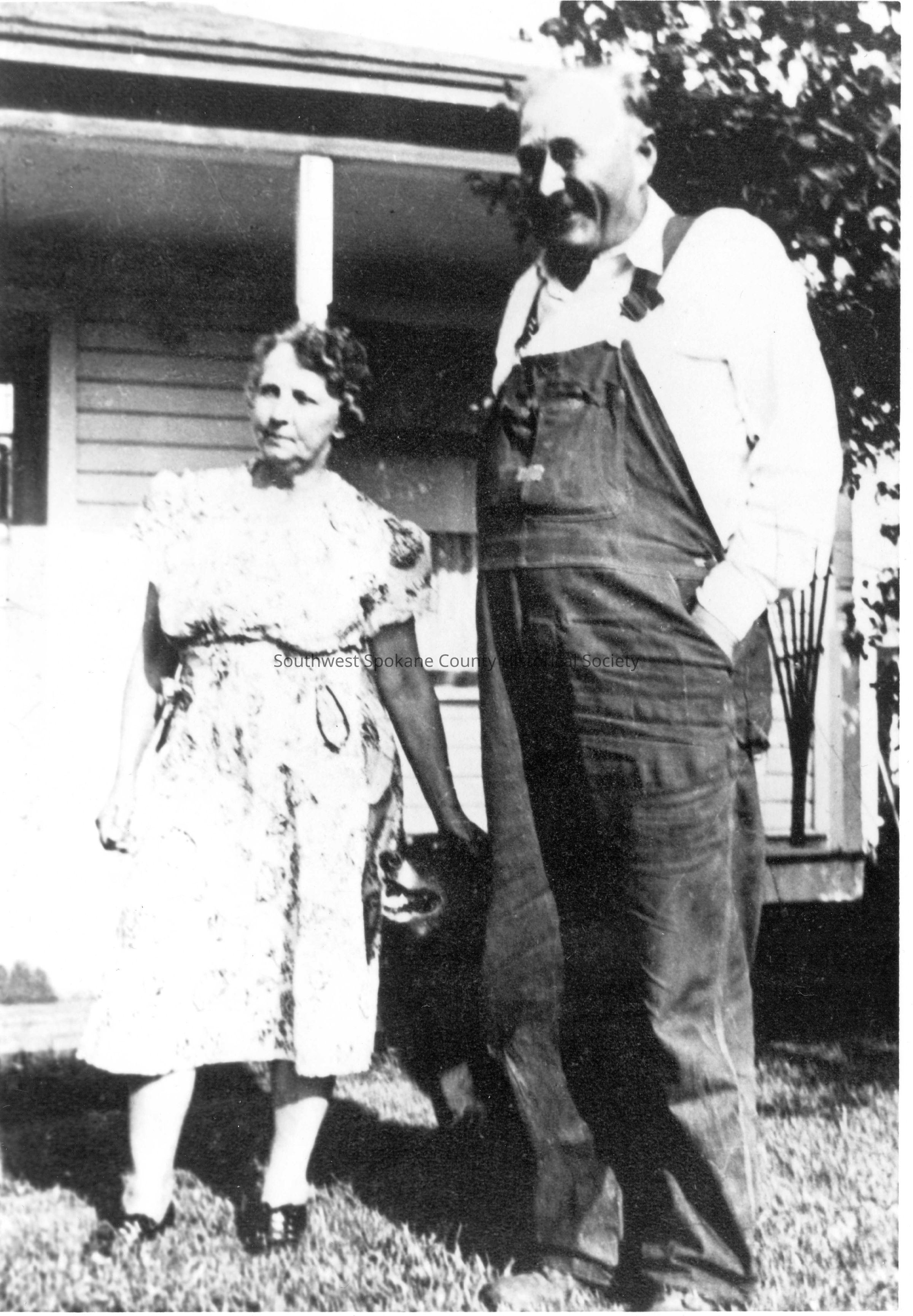Ida and Louie Franz with Scotty the dog in front of the 1912 house.