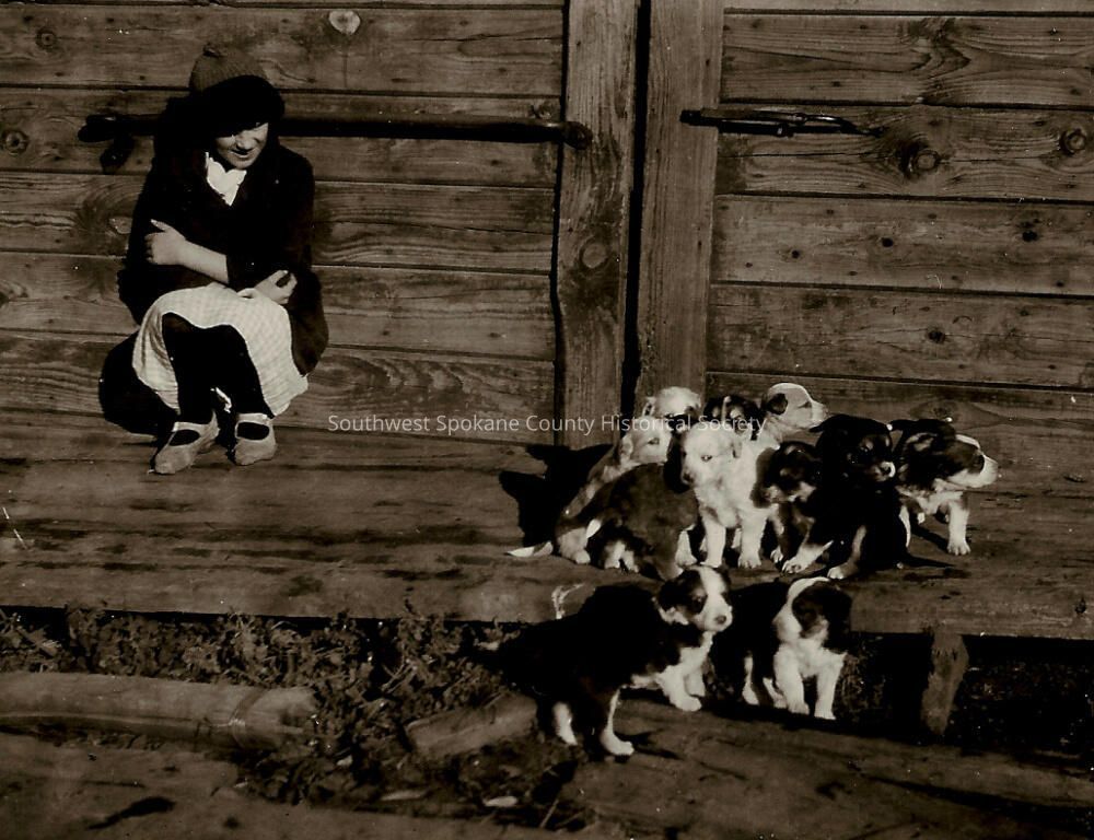 Ida Showalter as a girl with puppies on her father's farm circa 1924Collection