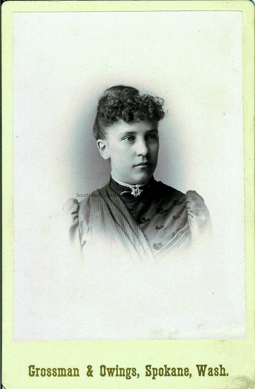 Cabinet card bust portrait of a young woman who may be Louisa Carlsen Mashburn circa 1892. From