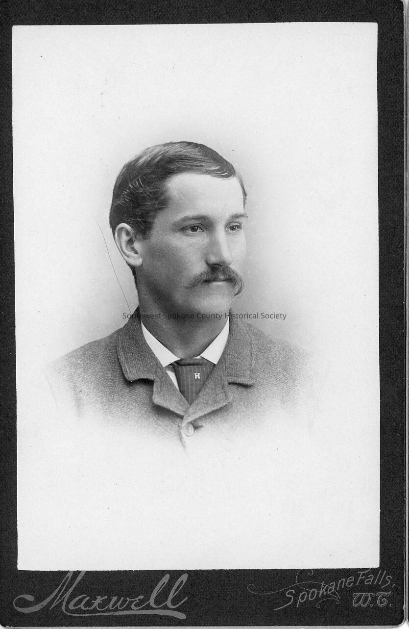 Photo of unidentified man with mustache and tie with letter "H"; Photographer, Maxwell of Spokane Falls, W.T.
