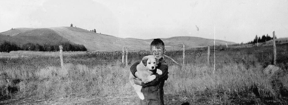 Buster Showalter with puppy on parent's farm circa 1922Collection