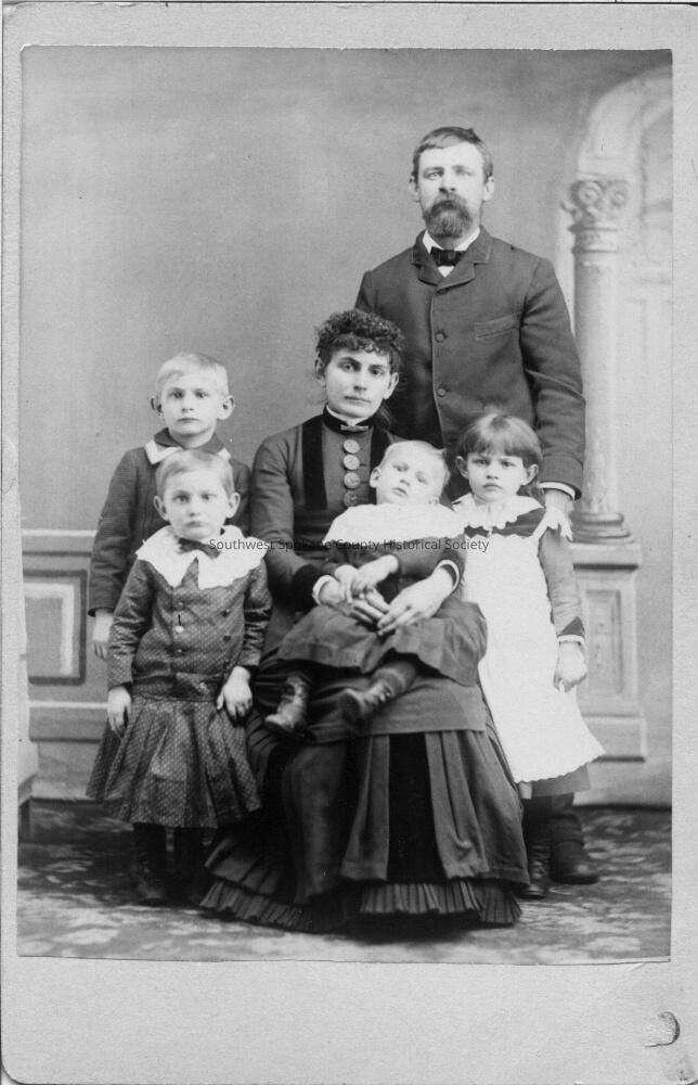 Cabinet card portrait of unidentified family, possible relatives of Alden H or Elizabeth Myers Johnson. Place unknown.