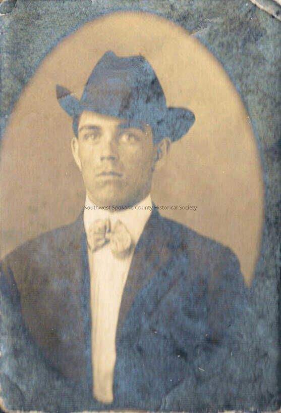 Tiny bust portrait of young man in light bow tie and hat.Acquisition