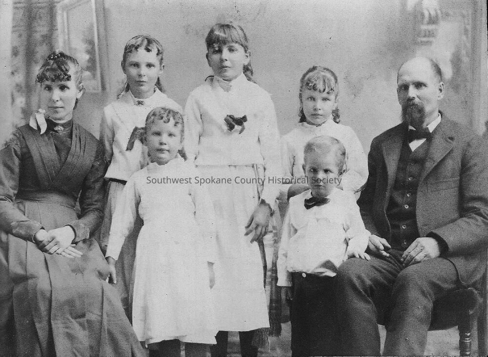Cabinet card portrait of unknown family, from McInnis Studio, First Street, Sprague, Wash.Collection