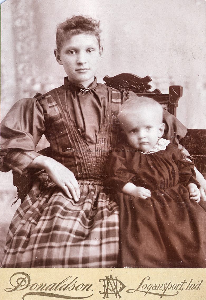 Cabinet card photograph of seated girl with toddler,unidentified but likely a relative of the Henry or Wilson families. From the Donaldson studio of Logansport, Ind.