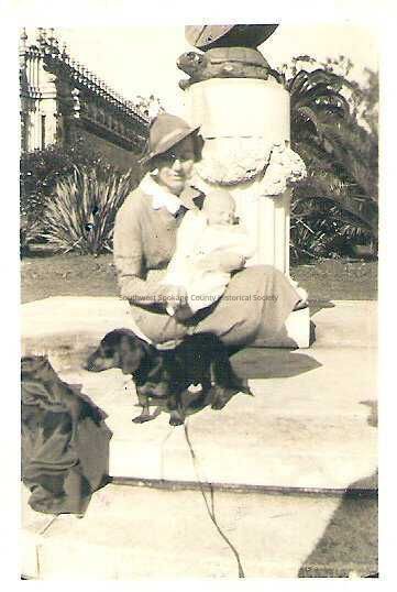 Violet Miller holding Charles Allen, with a Daschund.Entry/Object ID