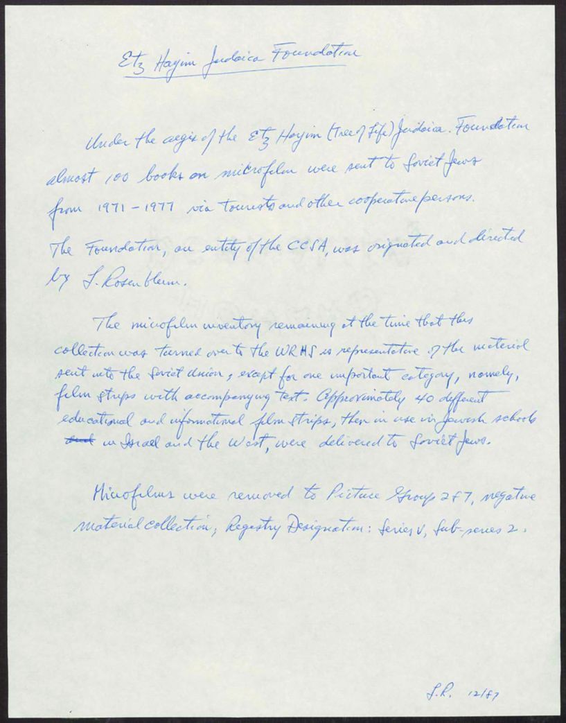 Box 08 folder 238 : Etz Hayim Judaica Foundation