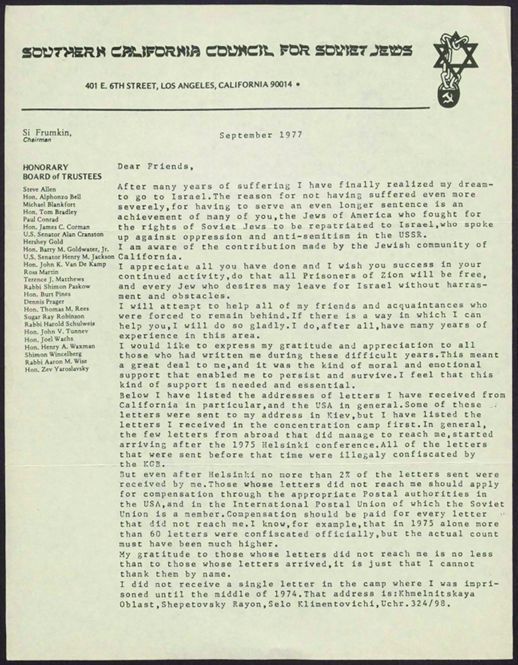 Material related to efforts to aid and raise awareness of Jewish refusenik prisoners in the Soviet Union.