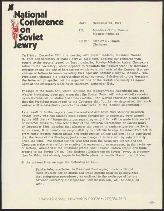 Cleveland Council on Soviet Anti-Semitism, Union of Councils for Soviet Jews, Rosenblum, Louis, United States. Trade Act of 1974. Title 4. Section 402, Vanik, Charles, Jackson, Henry M. (Henry Martin), 1912-1983, National Conference on Soviet Jewry (U.S.)
