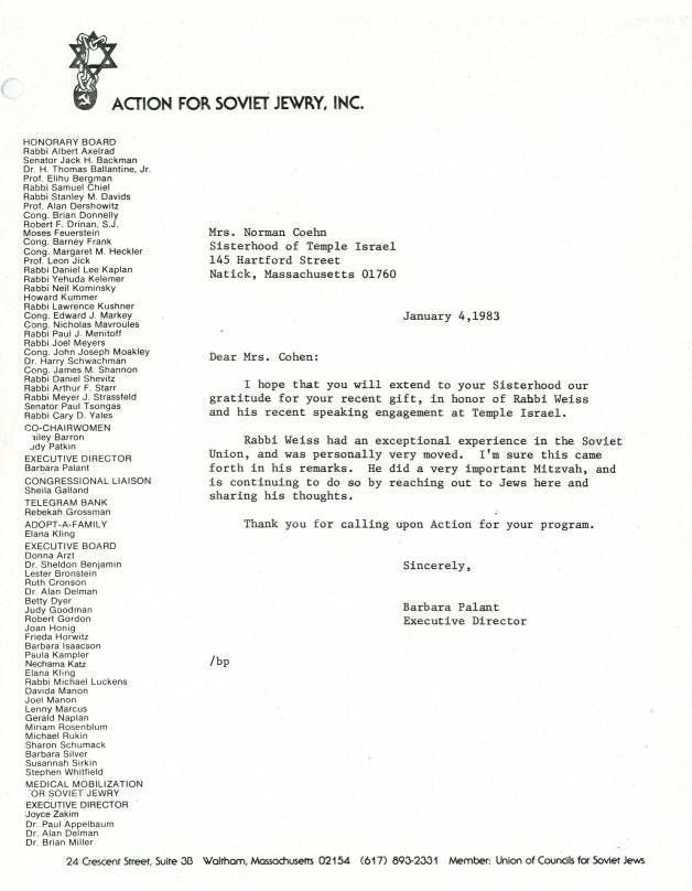 Jews -- Massachusetts -- Boston, Refuseniks, Antisemitism, Emigration & immigration, Jews, Soviet, Donations