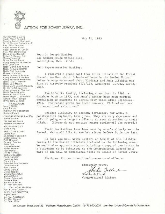 Union of Councils for Soviet Jews, Moakley, John Joseph, 1927-2001, Lifshitz, Vladimir, Lifshitz, Anna