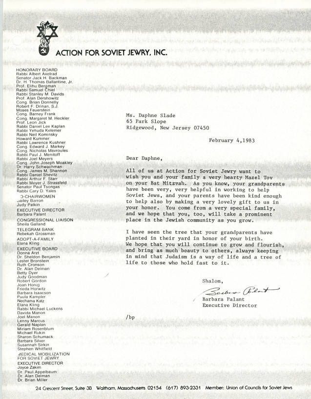 Jews -- Massachusetts -- Boston, Jews, Soviet, Emigration & immigration, Refuseniks, Bat Mitzvah, Donations, Jews -- New Jersey