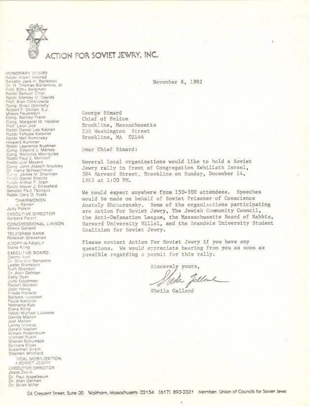 Letter alerting the police that they will be having a Soviet Jewry rally.
