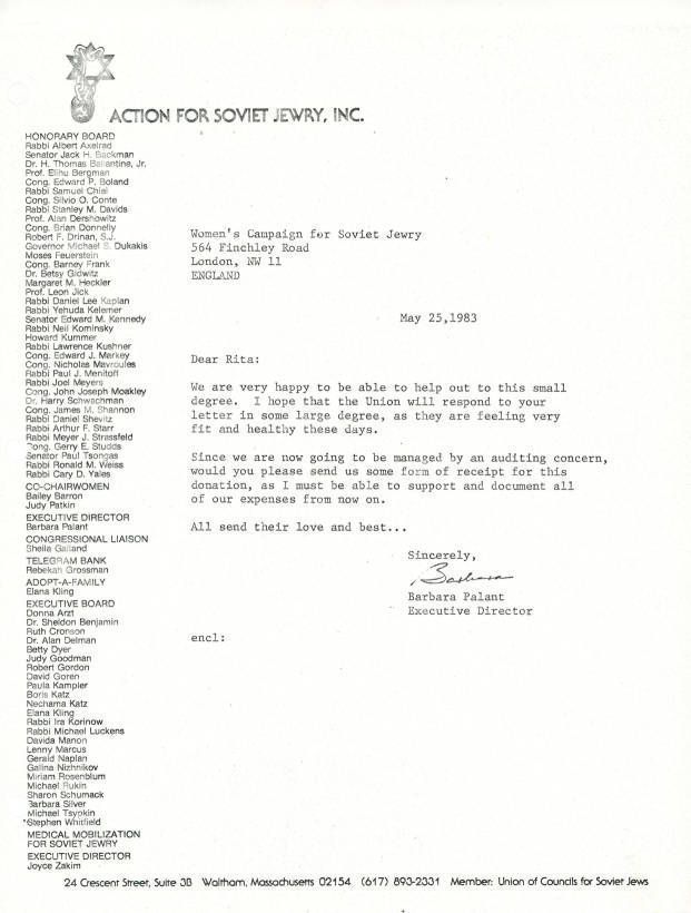 Correspondence - Barbara Palant to Women's Campaign for Soviet Jewry